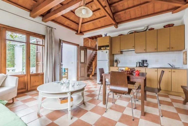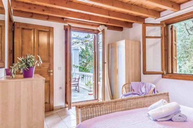 Head inside and discover a light and bright living area ready for you to relax in. Wind down and stick your feet up on the comfortable sofas in the open plan living area, or head upstairs to the bedrooms and balcony, providing a serene setting to truly chill out in. Take in the stunning Skopelos scenery without having to leave your front door, helping make this villa a picturesque paradise.