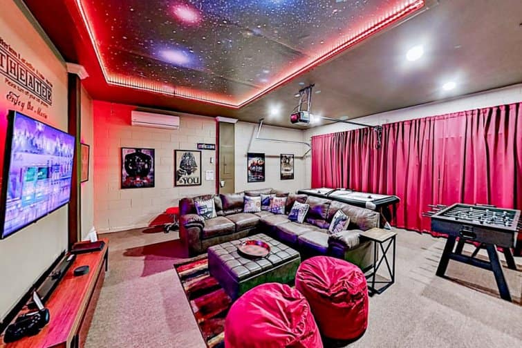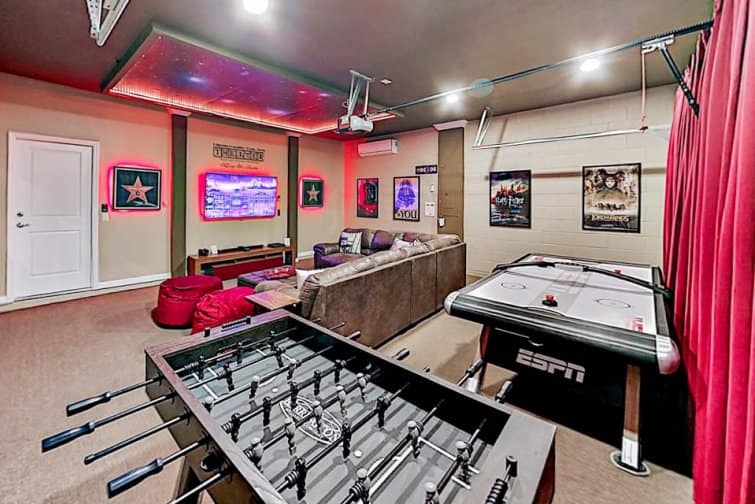 Explore through this spacious villa and eventually you’ll find the fun filled games and theatre room. Choc-a-bloc with outlets of hours of fun, no one would blame you for never wanting to leave! With your very own foosball and air hockey table, arcade machine, games console and gigantic 70” TV, there’s something to keep everyone in your group entertained.