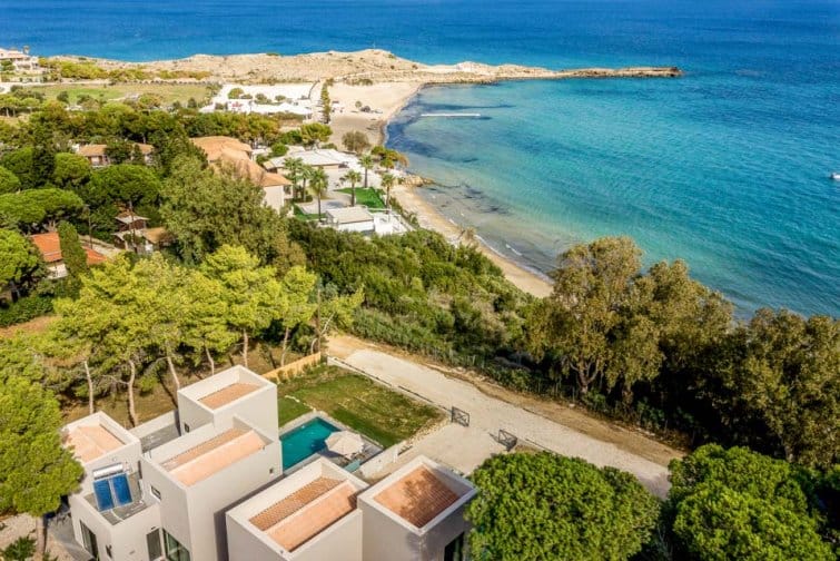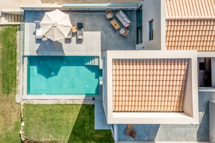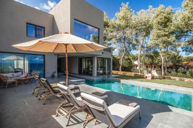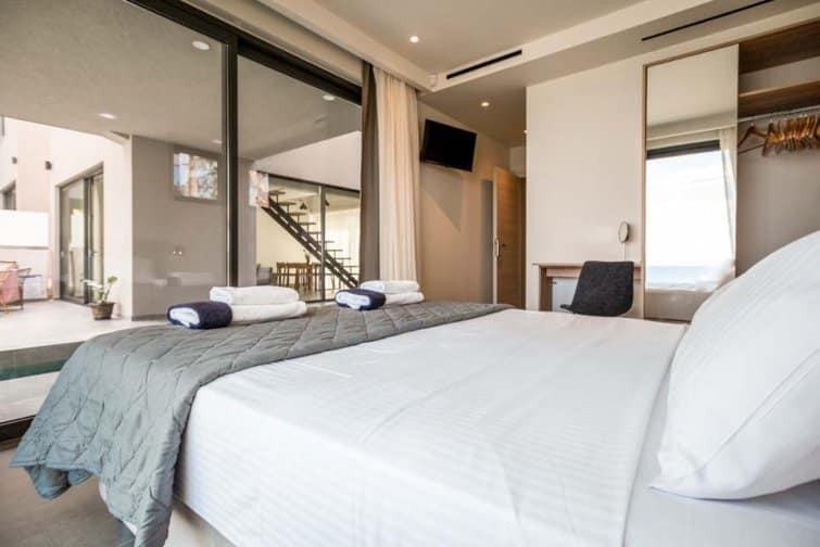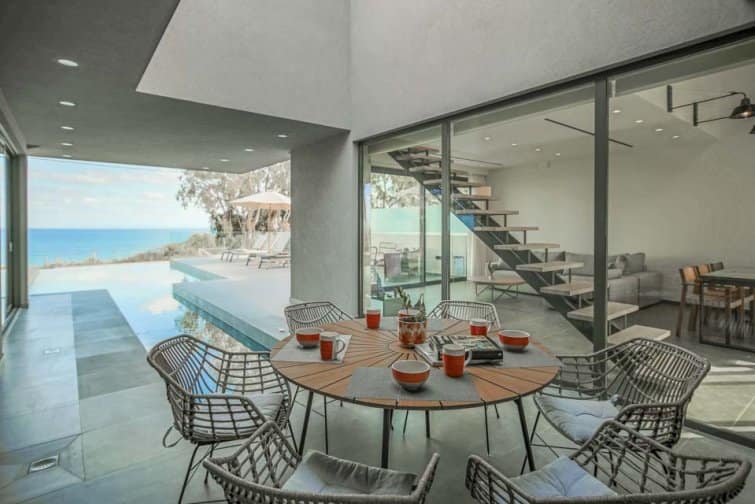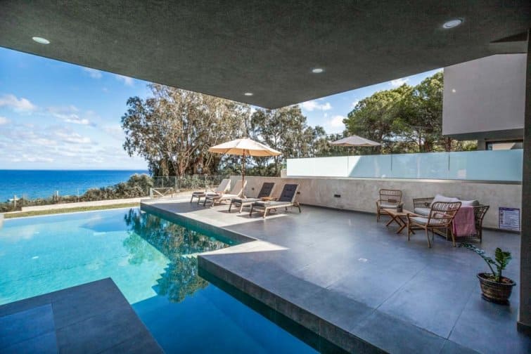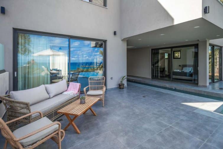 Outside you can bask in the Greek sunshine on one of the sun loungers, and when it gets to warm the glistening infinity pool will cool you off. Next door has a sister villa, great for large groups of families or friends to spend your holiday with.