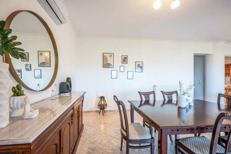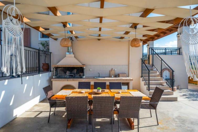With four bedrooms and three bathrooms, this property accommodates up to eight guests. The fully equipped kitchen has everything you need for a comfortable and convenient stay. With ample space to prepare and cook meals, you are free to enjoy your holiday on your own terms. Smart TV can be found in the living room, ideal for family nights after a day spent soaking up the sun. In the dining area, a long dining room table can seamlessly transition from dinner time to games night.