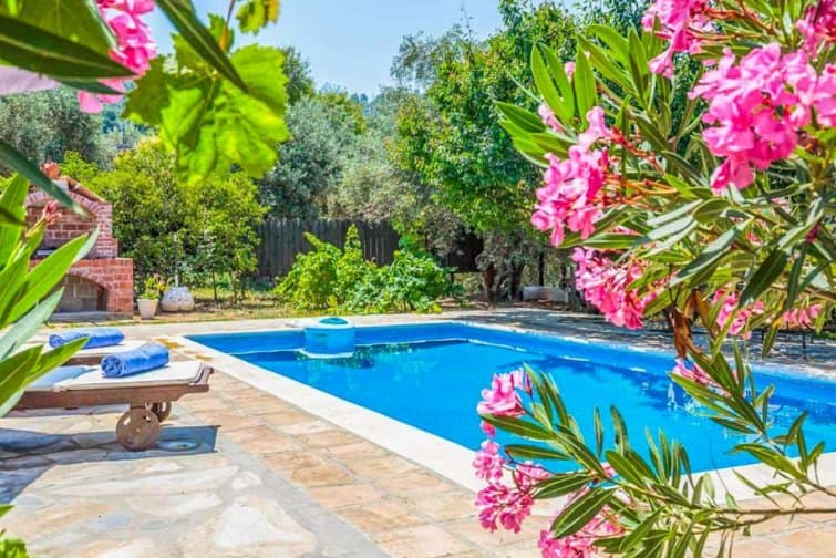 Jump into your private pool to kickstart your holiday. Lying in the middle of a stone terrace, float on the surface of the cool and refreshing water whilst staring into the clear sky, the hours will well and truly disappear as you let go of all those everyday worries. Appreciate the gorgeous mature gardens that sprawl around the villa, with fruit and olive trees providing picturesque spots to start a book in the shade. If you’re looking to embrace the sun, the poolside loungers are the best place to work on your tan and doze off in the warm heat.