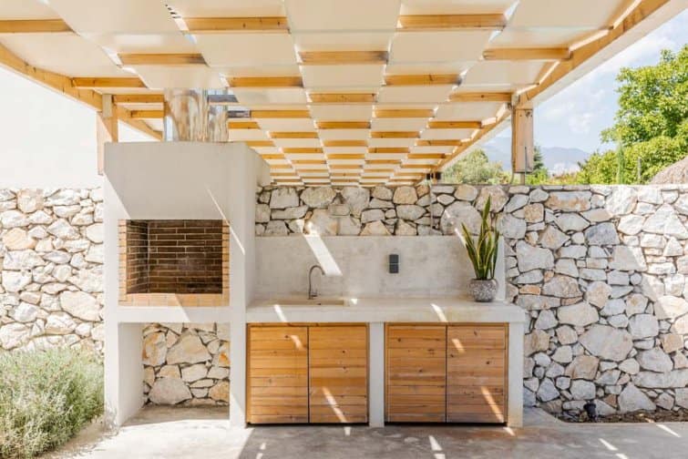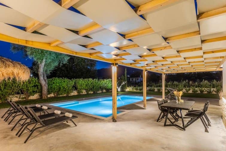 This beautiful stone built villa offers two air-conditioned bedrooms and three shower rooms, along with an open plan living area, featuring a comfortable lounge and equipped kitchen area, which leads out onto the shaded terrace area, here you will find a brick built BBQ- alfresco dining facilities, and sun loungers to enjoy the glorious Greek sunshine. At night the villa is lit up, providing a great relaxing space to enjoy local food and wine.