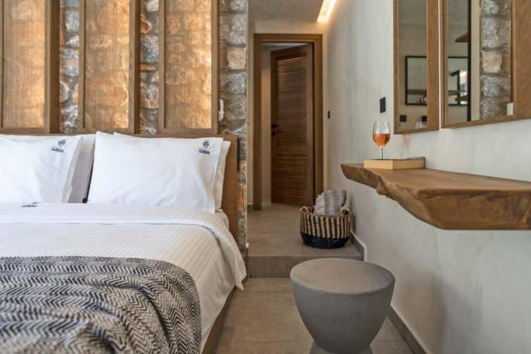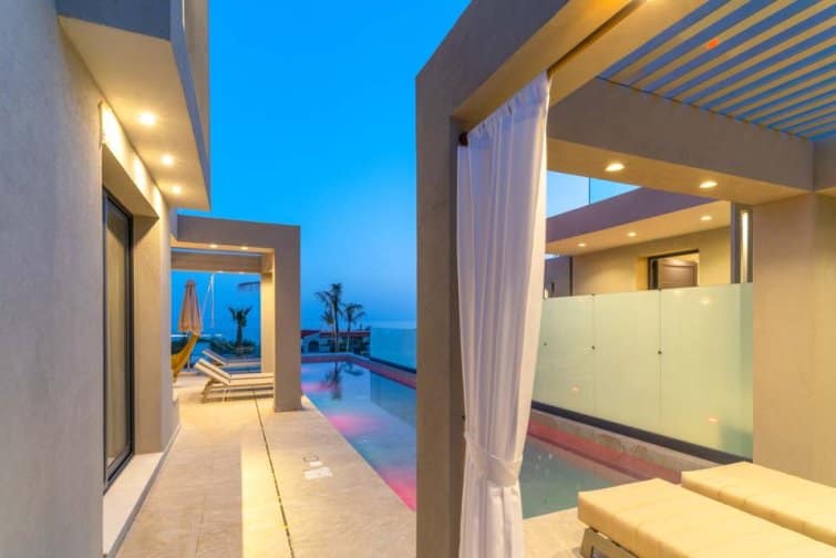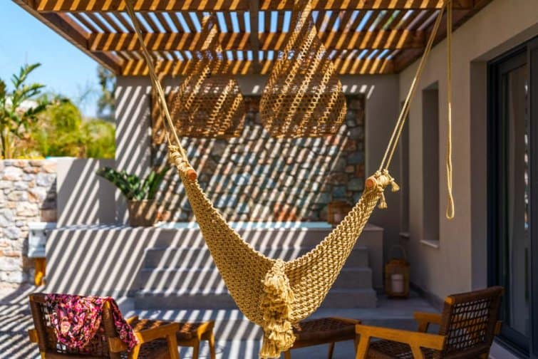 The spacious outdoor terrace and large private swimming pool are enough to leave you speechless, a plethora of cosy seating areas peppered with sofas, bean bag chairs and hammocks ensure that you will be able to find your ideal space. The terrace features a brick-built barbecue area, ideal for indulging in alfresco dining experiences. An outdoor sofa, complemented by a table and chairs, creates the perfect setting for lounging as you watch the sunset over the Ionian sea ahead of you.