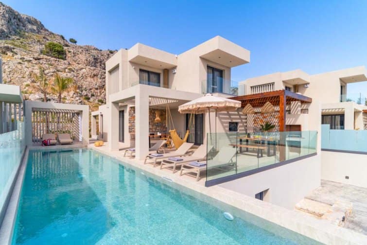 Offering a serene escape for those seeking a touch of elegance, Villa Ouranos is the definition of an idyllic Greek paradise. Nestled between Pefkos and Lardos villages on the Southeastern coast of Rhodes, Villa Ouranos is set amongst picturesque, rolling hills with breathtaking sea views.