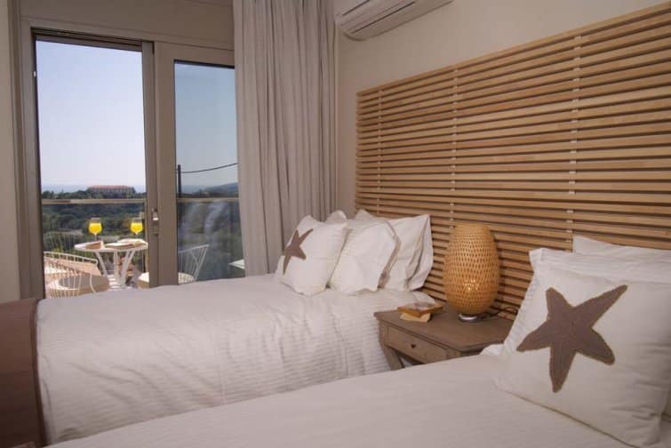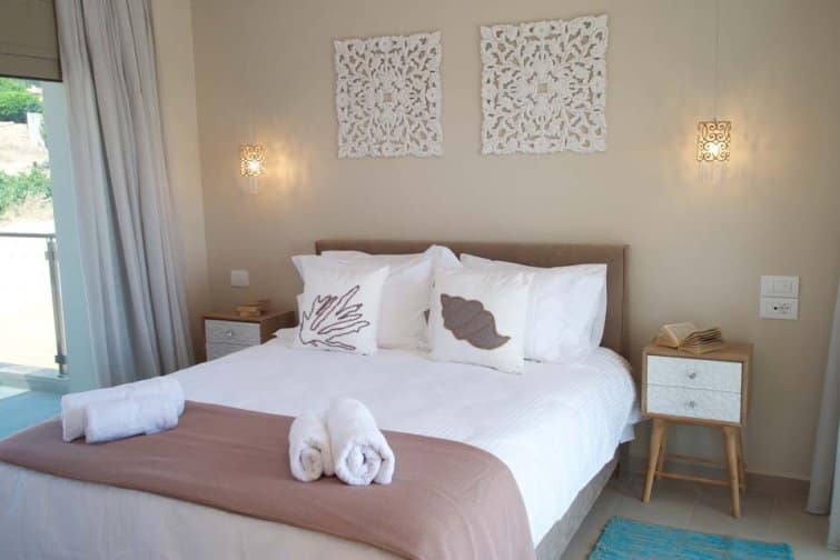 Three bedrooms and three bathrooms accommodate up to six guests, ideal for couples, families, and friends travelling together. On the ground floor, the kitchen features luxury amenities, and modern appliances such as a milkshake blender and Dolce Gusto Espresso machine among essential cooking equipment. The living room and dining area are open plan, inviting the entire family to spend time together.