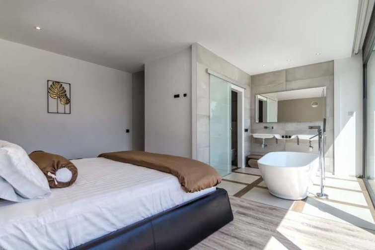 In the beautifully designed garden, you can soak up the Spanish sun from the balcony terrace, luxury sun loungers, and the al fresco dining area. With a private pool and built-in stone BBQ, there is plenty of opportunity to make the most of your time outdoors.