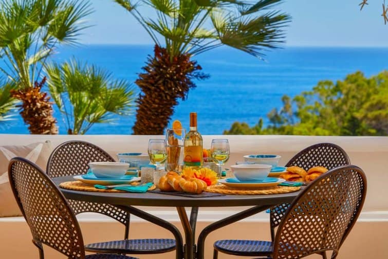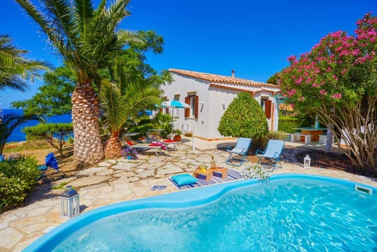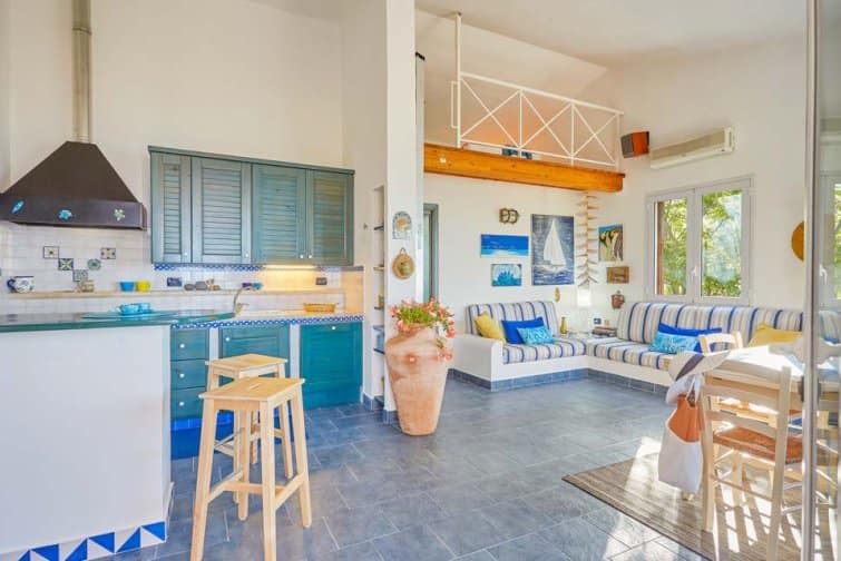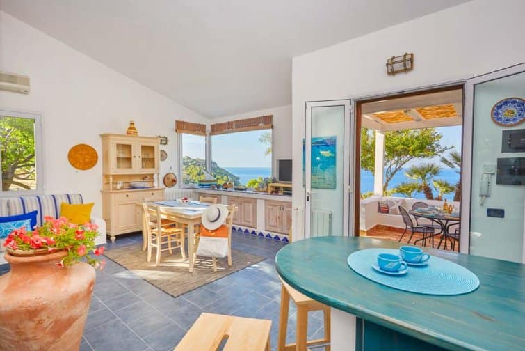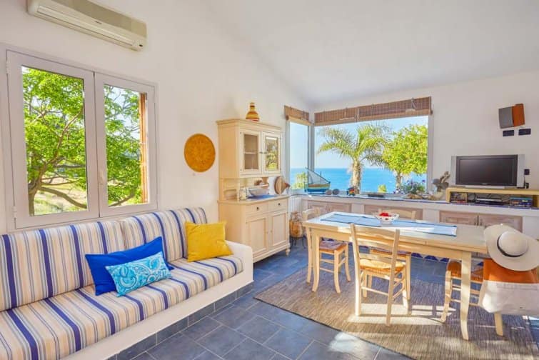 Set within expansive grounds, Villa Sea Crystal I provides a haven of relaxation, with secluded spots scattered throughout the property. The soothing sounds of the waves crashing against the rocks at the nearby Cala Mazzo di Sciacca cove can be heard from the private pool, inviting guests to bask in the ambiance of coastal bliss. Ideal for sun-seekers and beach enthusiasts, guests can unwind on the shores after unrolling their towels in secluded spots, ensuring a truly immersive escape. The villa features a charming single-level layout, adorned with expansive windows and patio doors that frame breathtaking vistas of the surrounding landscape.