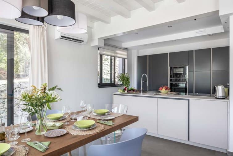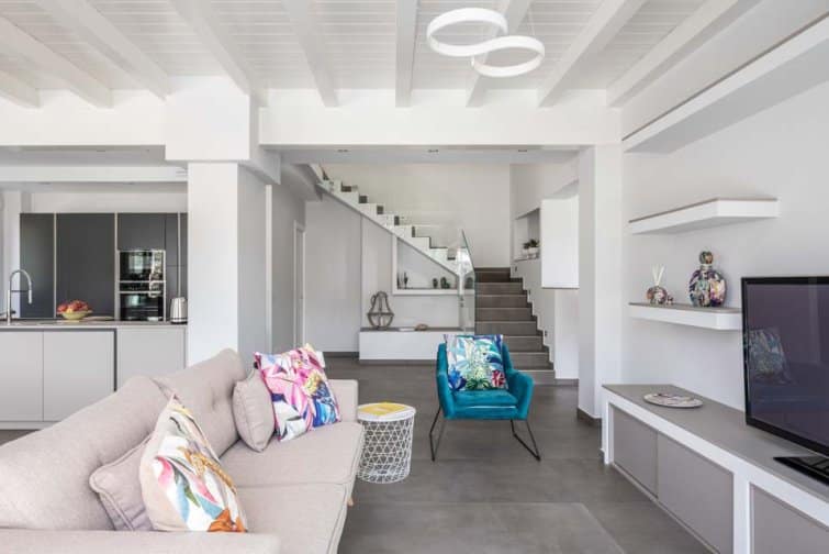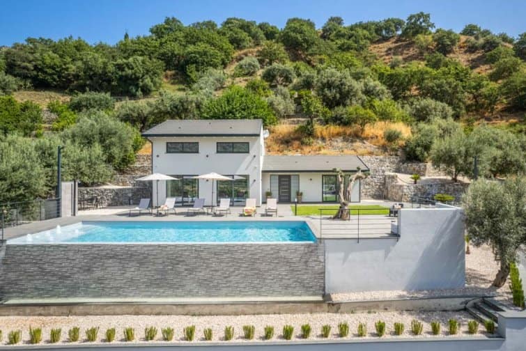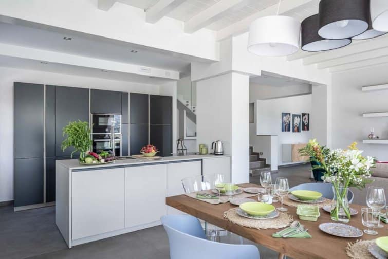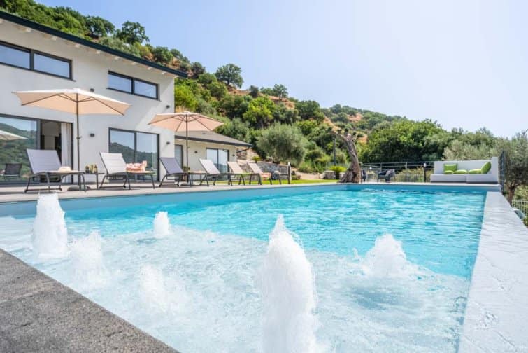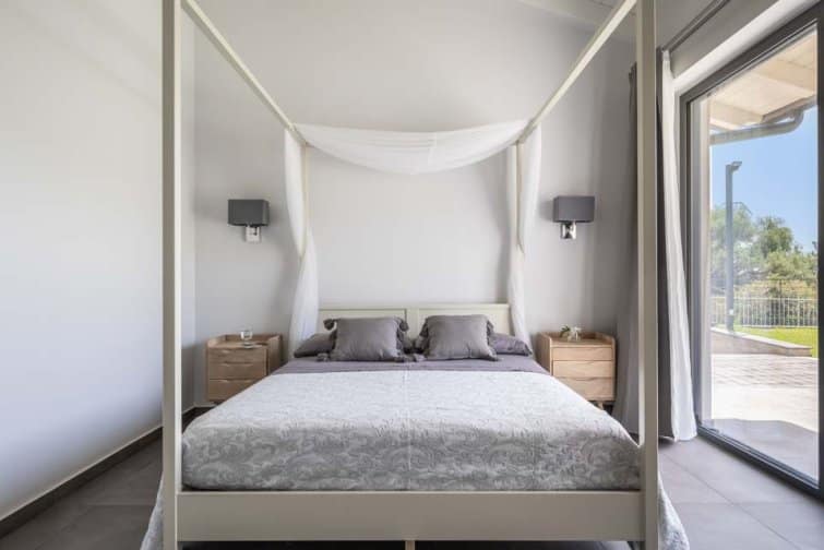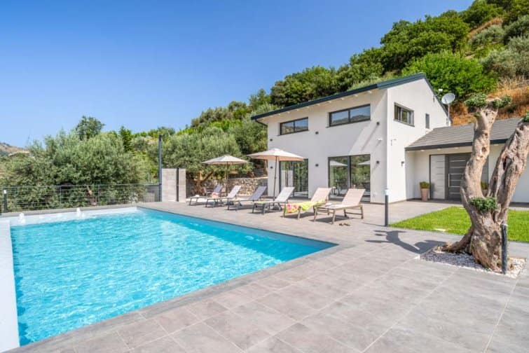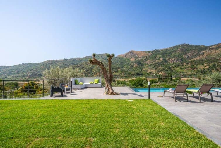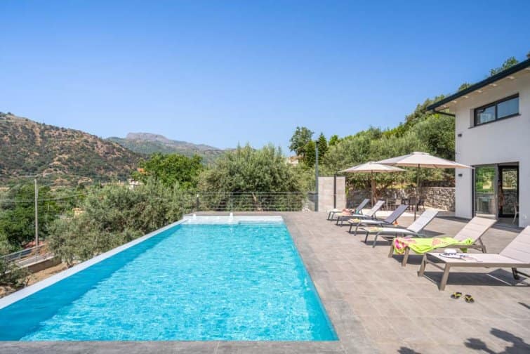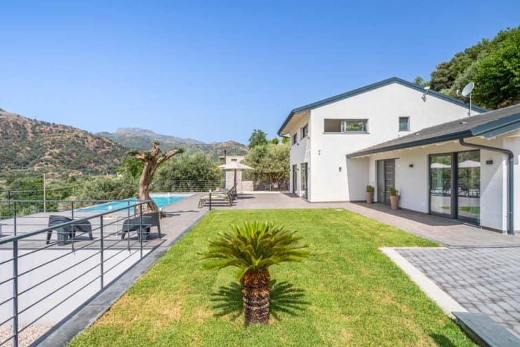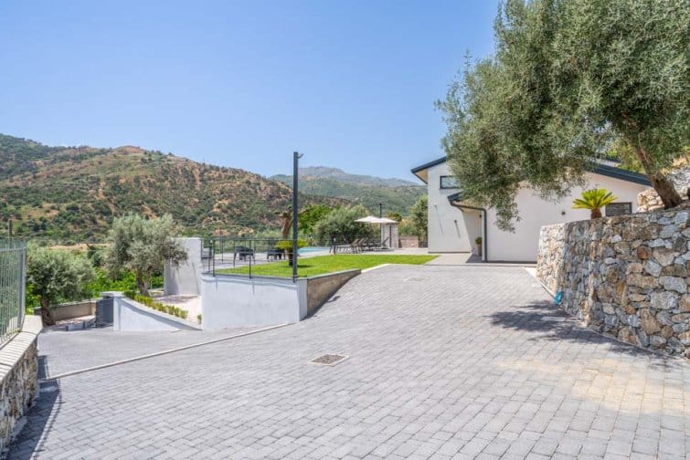 This modern gem is nestled near the entrance of a charming valley, just a few minutes’ drive from the stunning Taormina coastline, known for its seafood restaurants and Blue-flag beaches. Villa Sicilian Starlight boasts an infinity saltwater pool with a whirlpool section, offering an ideal spot to soak in the Sicilian surroundings. Encircled by manicured gardens where the scent of Mediterranean plants permeates the air, relax and read your favourite novel on a plush sun lounger amongst scattered olive trees and vibrant bougainvillaea.