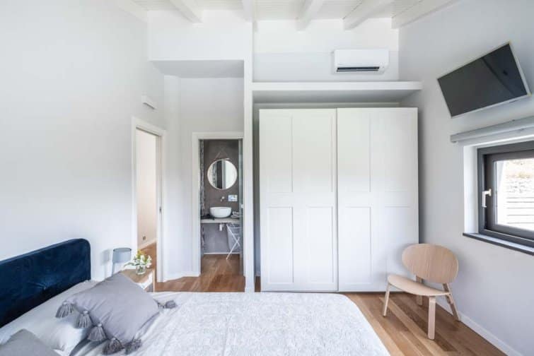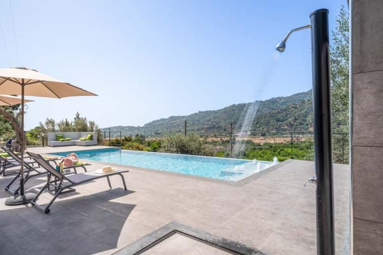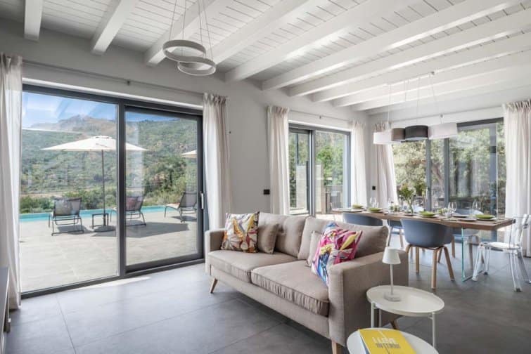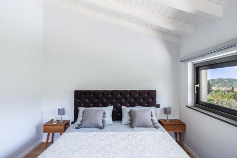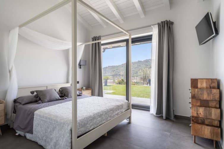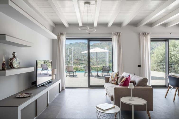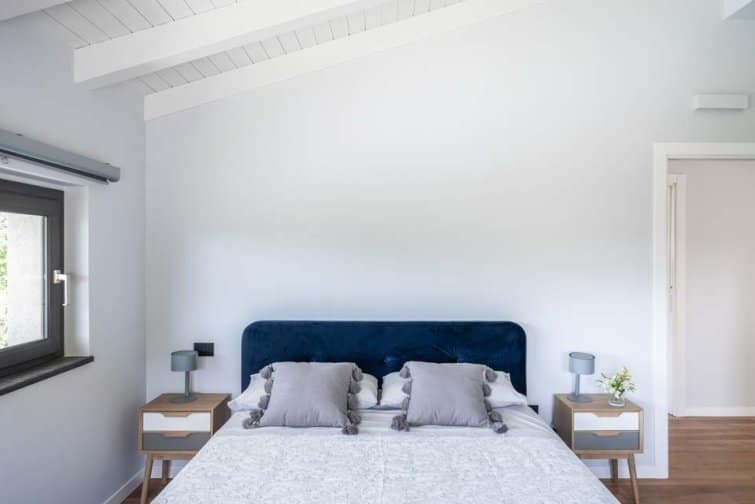Step inside this inviting retreat to discover an elegant ambience. The interior features soft hues on the walls, creating a zen space for relaxation, while floor-to-ceiling windows frame the mountain panorama. On the ground floor, a spacious bedroom, ensuite shower room, and walk-in closet awaits. Large patio doors open to let in the Sicilian breeze and provide direct access to the pool area. Upstairs, two ensuite double bedrooms feature traditional wooden beams across high vaulted ceilings, adding a touch of class to your stay. The villa offers all the modern conveniences expected on holiday, along with sweeping mountain views from the terrace and first-floor bedroom windows.