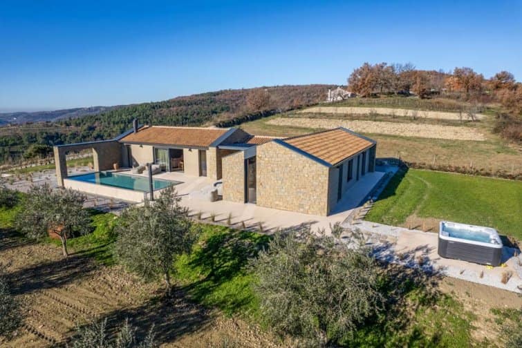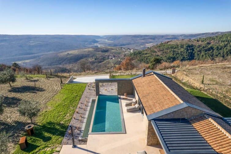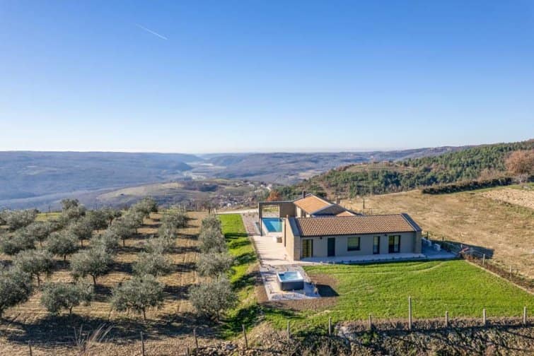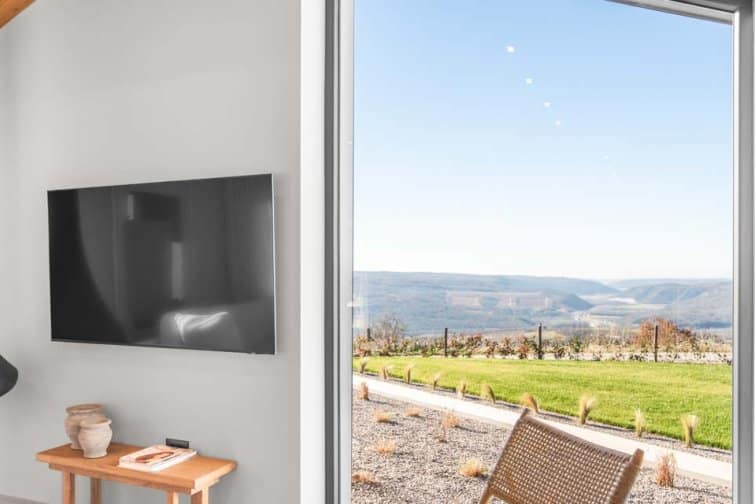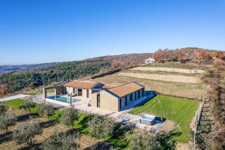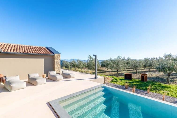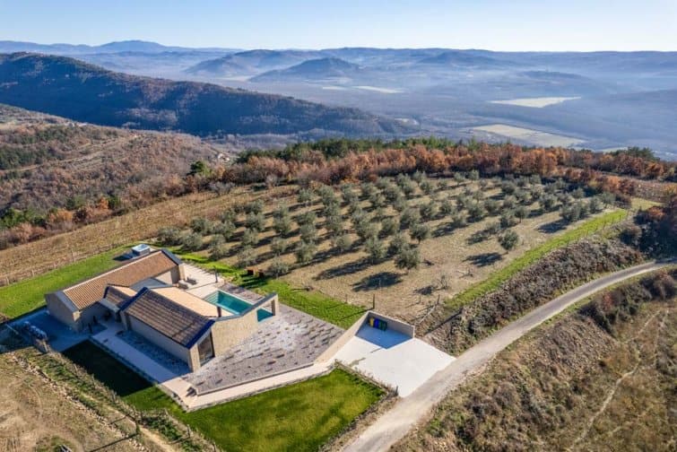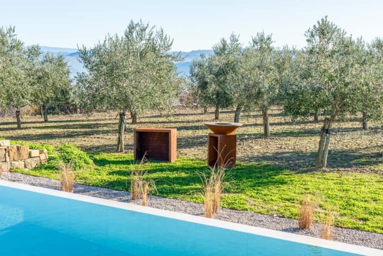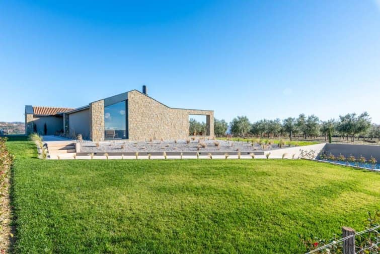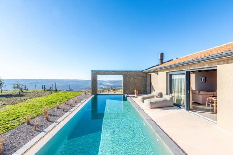 Thoughtfully designed to harmonize with its natural surroundings, the house boasts floor-to-ceiling windows that invite the outside in, ensuring that every corner is imbued with the beauty of the landscape. Utilizing natural materials and earthy tones, the interior pays homage to its idyllic setting. Vaulted ceilings adorned with wooden beams accentuate the spaciousness, blurring the boundaries between indoors and outdoors.