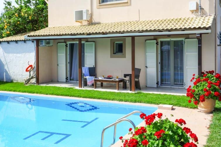 A private swimming pool takes centre stage. Framed by sun loungers, here you can relax and unwind under the Greek sunshine. With a built-in barbeque and shaded outdoor terrace, you can dine al fresco for breakfast, lunch, and dinner. From the balcony, enjoy elevated views of the Ionian and watch as the world goes by from a height.