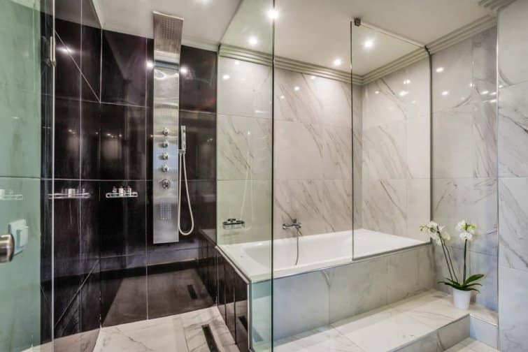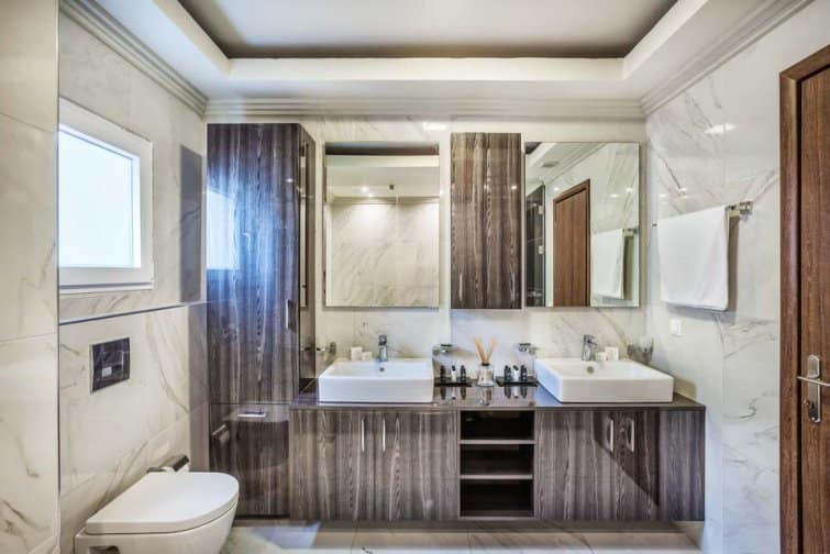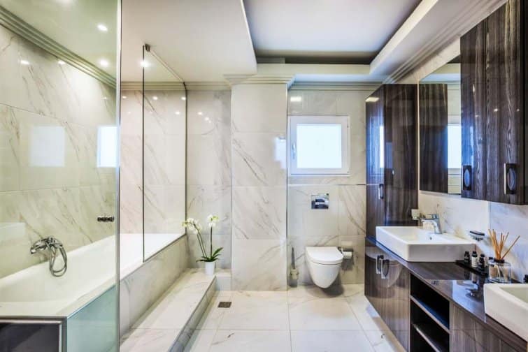 On the ground floor you will find a twin bedroom with ensuite shower room. Up on the first floor we find 2 large double bedrooms which share a large glamorous full bathroom with double sinks and both have patio doors out to furnished balconies with amazing sea views. The villa has WIFI throughout and all bedrooms are air conditioned.