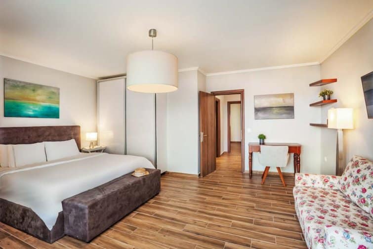 The complex itself has marvellous sea views and is just a 15-minute walk from the centre of the village. On arrival at the reception area which also contains an indoor pool, gym & spa area (will need a reservation to use) the friendly staff are there to welcome you and are happy to help you make the most of your stay.