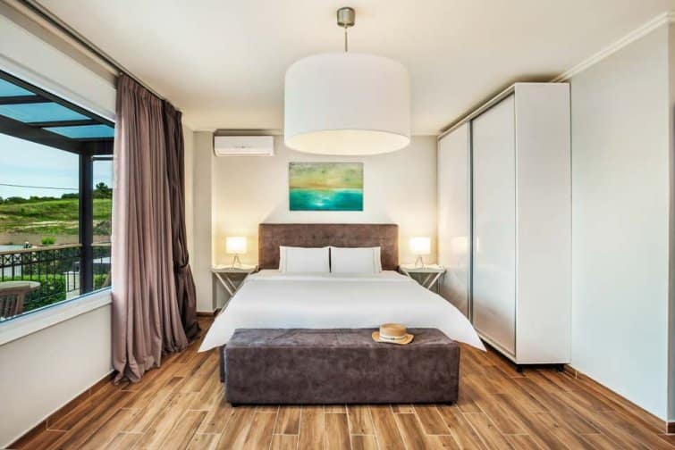 Villa Tesera is part of the family run Sunny Villas & Spa resort, perched on a hill just above the bustling resort of Hanioti, with its beautiful stretch of beach and a great selection of restaurants and bars and cute shops to wander around.