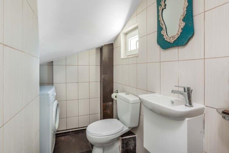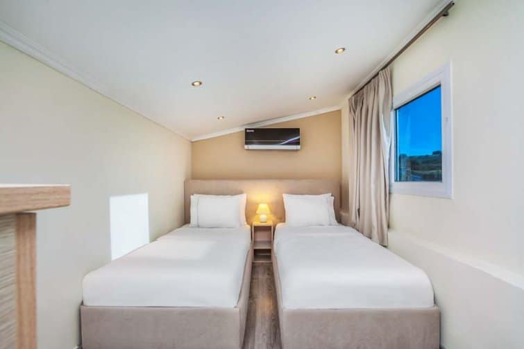 On this first floor you will find the second double bedroom and a separate rain shower bathroom. From here the doors lead out to a furnished private terrace, again with marvellous views and a perfect spot to enjoy a coffee at sunrise or a cocktail at sunset! Up another flight of stairs you reach the cosy second floor with a twin bedroom making this an ideal villa for families or groups of friends.