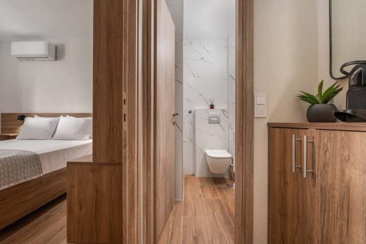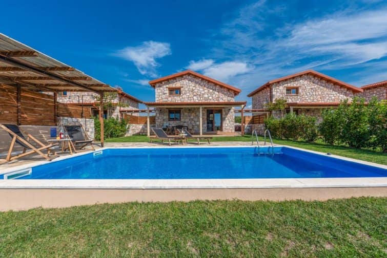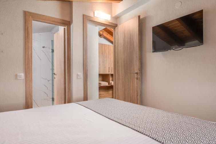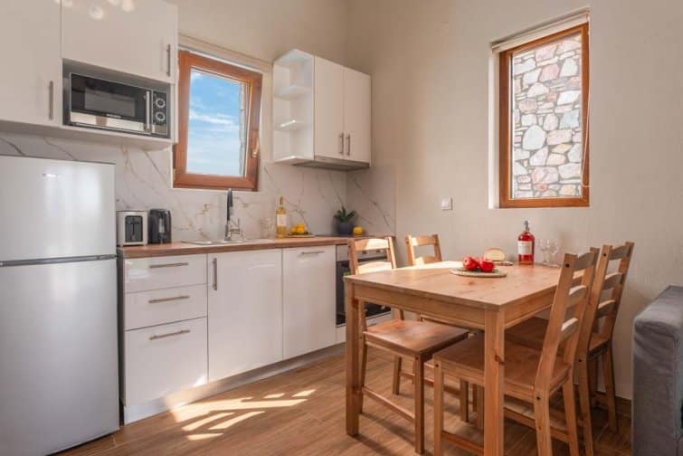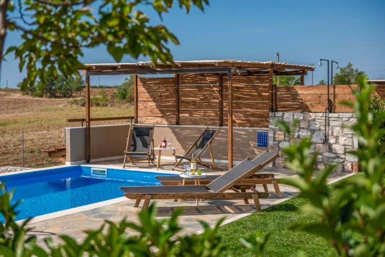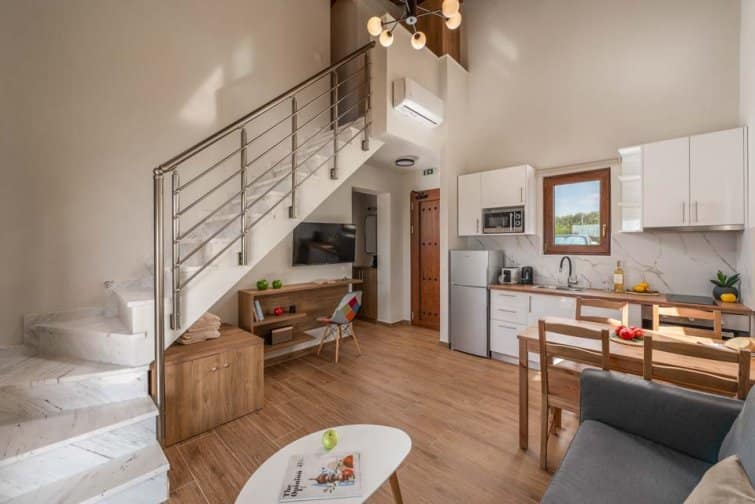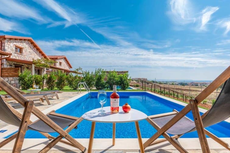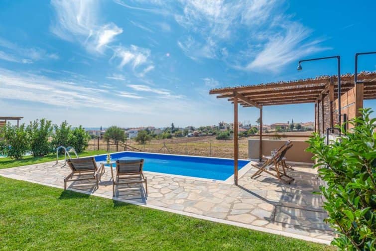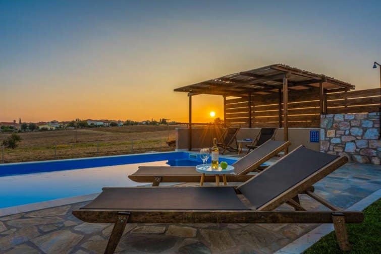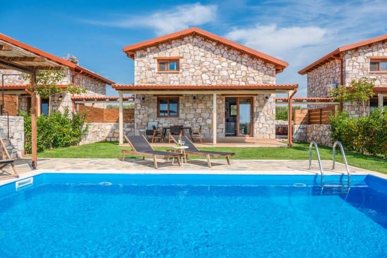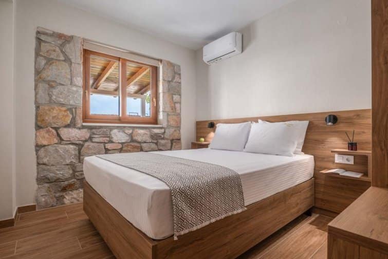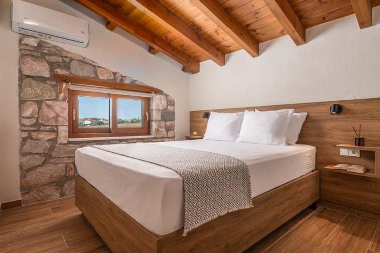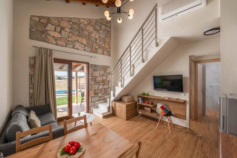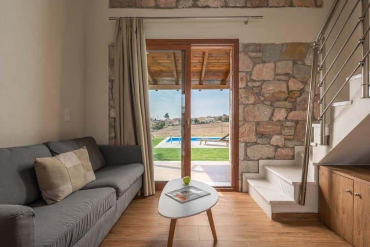 This newly constructed resort consisting of charming stone villas, each boasting its own private garden and pool. Nestled amidst picturesque farmlands, this beautiful retreat is just a short stroll away from the quaint village of Flogita and its beautiful sandy beach. Guests here have the unique opportunity to immerse themselves in a natural environment surrounded by olive trees, watermelon fields, and other crops. They can experience the daily life of the local inhabitants and witness the hard work of nearby farmers. This serene setting offers an ideal choice for both couples and families.