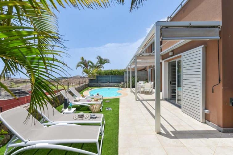 Boasting views across the golf course, as far as the eye can see, is Villa Vista Golf 10. Ideal for golf lovers and sun bathers alike, this beautiful coral coloured two-bedroom villa is a must see. This property is spacious, with two comfortable bedrooms, each with its own bathroom facillity and balcony/garden access. Modern in syle, you’ll find cool air conditioing, contemporary furnishings and bright interiors. The garden terrace is without a double where you’ll be spending msot of your time, soaking up the rays in style with a class of vino or sangria in hand. Cook up a storm on the BBQ grill, or make a splash in the heated* pool.