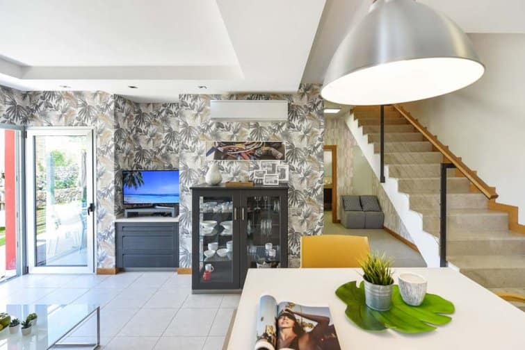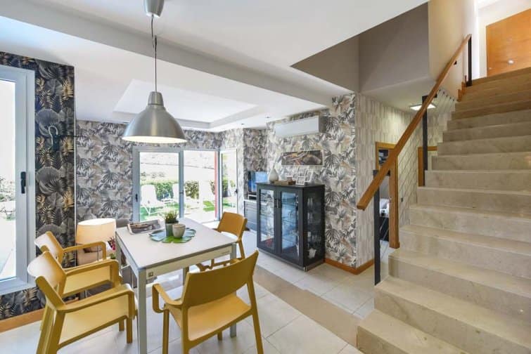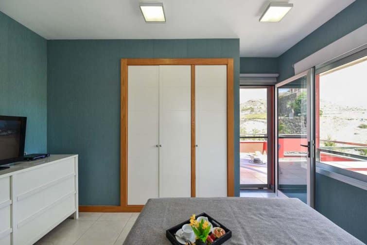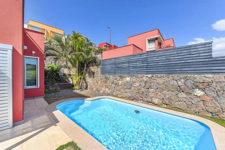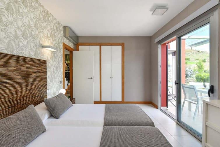 The villa itself is just as impressive, set among the rocky, mountainous landscape. Surrounded by rolling hills and lush green countryside, it’s easy to forget you’re just a short drive from the busy Maspalomas resort. In the garden, you will find an outdoor dining area and cushioned seating area conveniently located next to the built-in barbeque. A few steps away, the private swimming is framed by sun loungers where you can enjoy long days of sunshine.