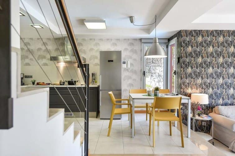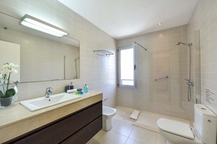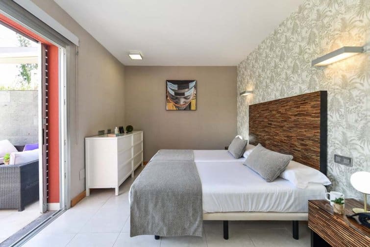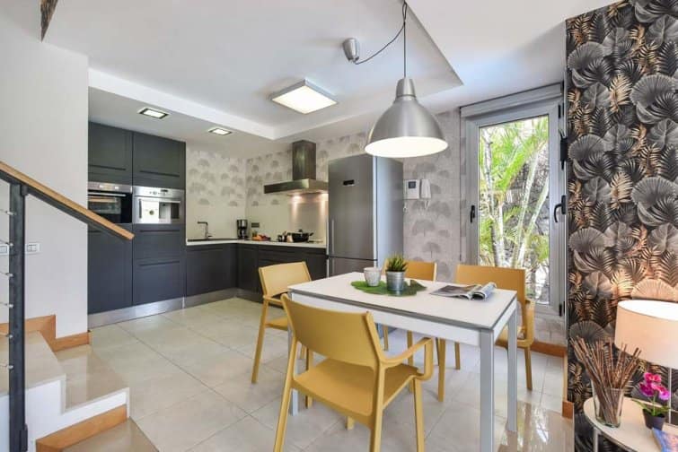 Inside, this property comprises two bedrooms and two bathrooms, accommodating up to four guests on a getaway to the Canary Islands. Downstairs, open plan living room, dining area, and well-appointed kitchen are both comfortable and functional. Equipped with all the amenities you may need for a pleasant stay, including a dishwasher, microwave, flat-screen TV, and comfy sofa, you have a range of modern home comforts available to you.