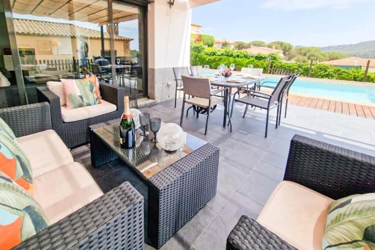 Outdoors, this villa boasts several terraces where you can unwind and enjoy scenic views of the resort center. The highlight of the outdoor space is the private pool located behind the villa, offering a refreshing oasis for relaxation and enjoyment. Villa Vuitton seamlessly combines comfort, style, and convenience, promising an unforgettable stay in Blanes.