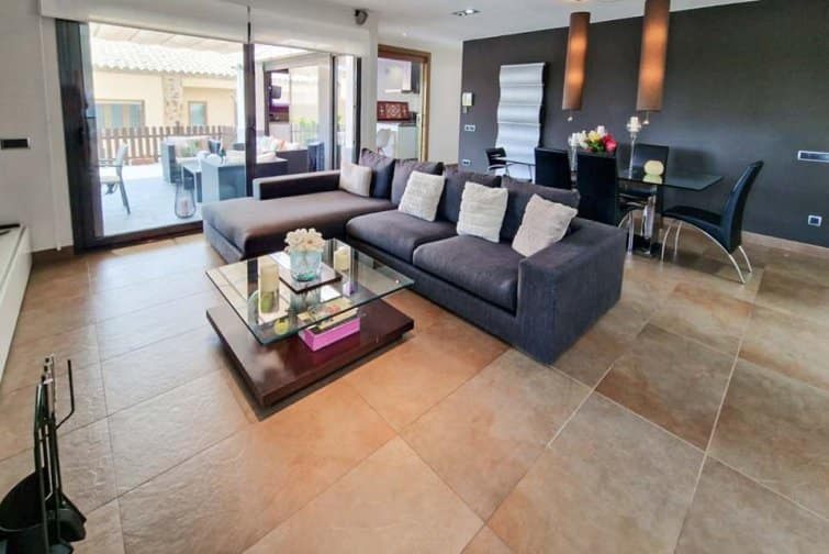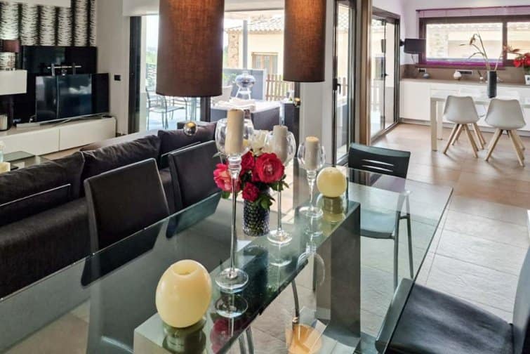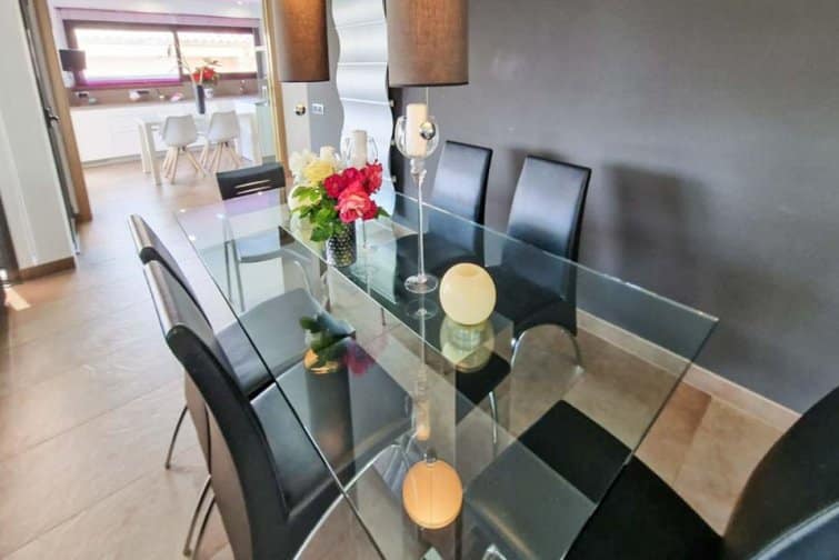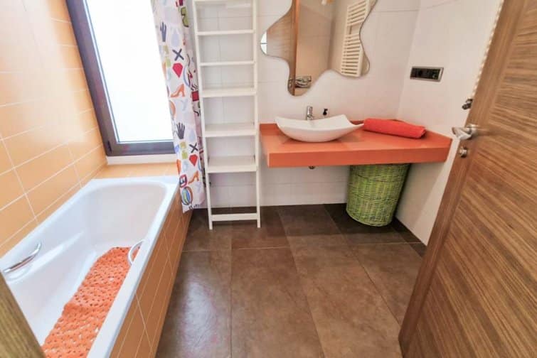 Step into Villa Vuitton on the first floor, where you’ll be greeted with a pleasantly modern interior. Decorated with a mixed color palette, the villa exudes a sense of warmth and elegance, making you feel right at home. The first floor features a bright and spacious living/dining room and a modern kitchen equipped with all of the necessary appliances. Additionally, you will find one bedroom and a shower room on this floor.