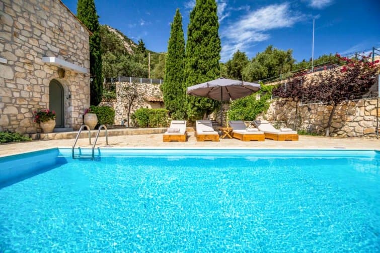 Step outside into the embrace of nature’s bounty, where a private pool glistens like a hidden gem amidst the landscape. The surrounding terraces, crafted from time-worn stone, invite you to bask in the dappled sunlight, creating moments of serene introspection or lively laughter, depending on your whims.
